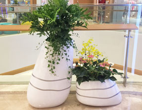 藝術花盆花器通過它的材料、造型、顏色來體現藝術設計理念,是商場美陳中的一個重要休閑景觀,凈化室內空氣點綴裝飾商業環(huán)境